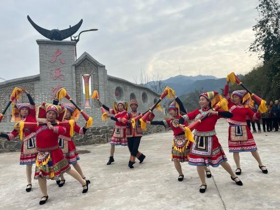 活动现场。受访单位供图祥龙起舞,瑶鼓声声。1月18日,湖南江永县千家峒瑶族乡大溪源村瑶族文化传承协会成立,当地瑶族同胞身着民族服饰载歌载舞,通过具有瑶族特色曲调的舞蹈、音乐、歌谣等形式,展示原汁原味的民俗和瑶族传统文化。
